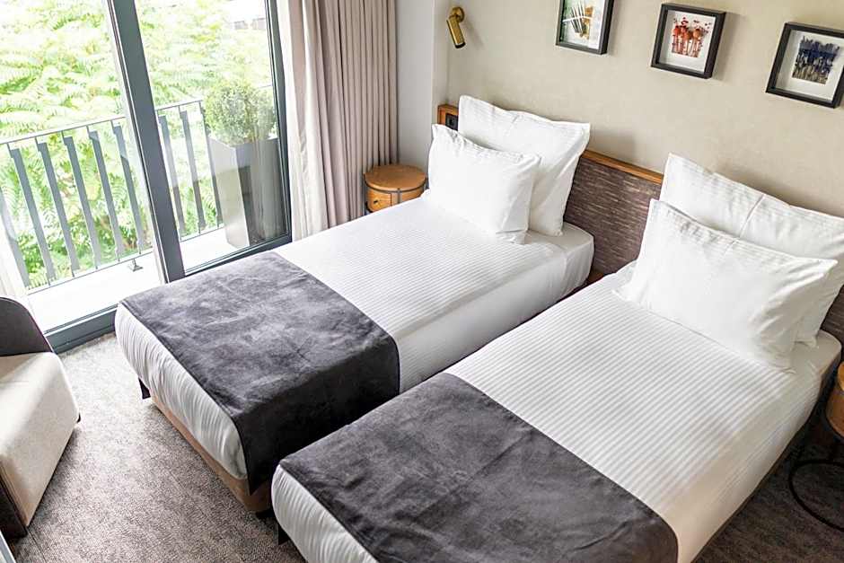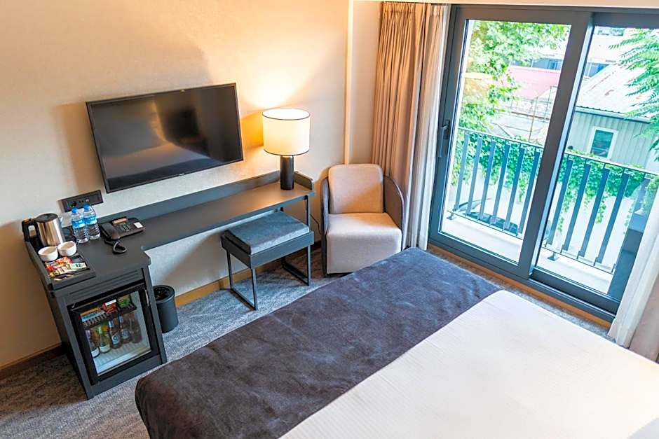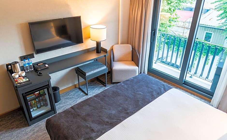 This air-conditioned twin/double room is consisted of of a flat-screen TV with streaming services, a private bathroom as well as a balcony with city views.
